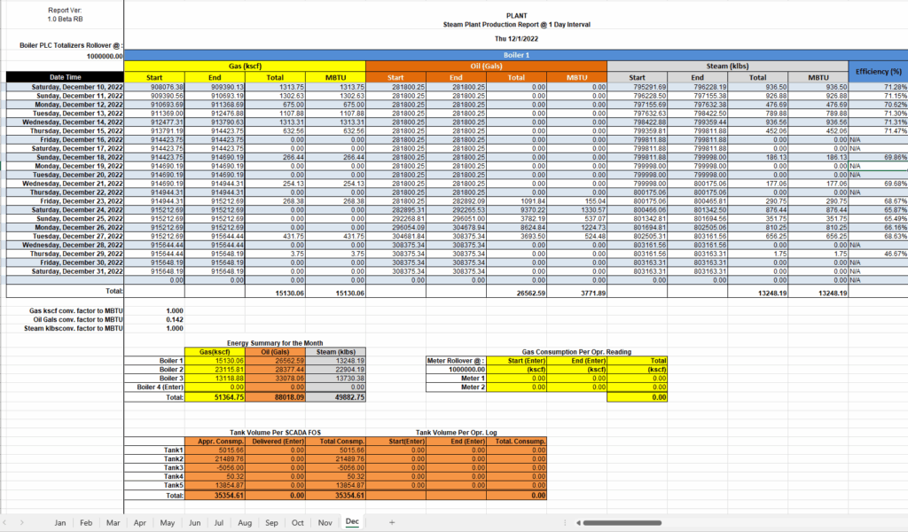 - Create custom Excel/PDF reports highlighting energy usage, production throughput, equipment runtime and other plant parameters.